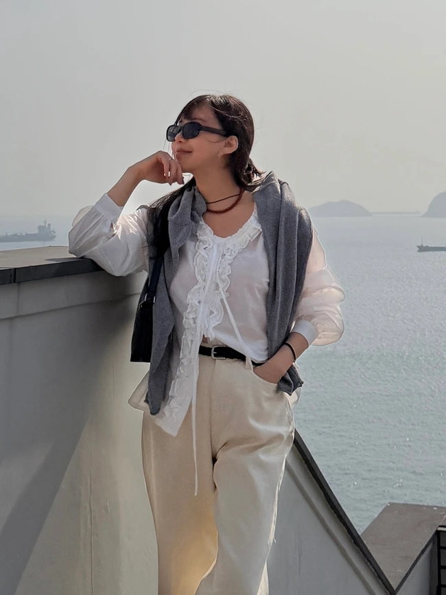 딘 프릴 끈 여리핏 블라우스 | Rangbe