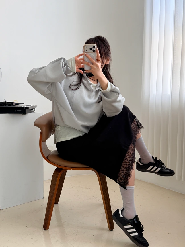 리오 밑단 레이스 새틴 H라인 롱스커트 | Rangbe
