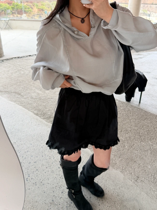 메리 스토퍼 스트링 후드 블라우스 | Rangbe