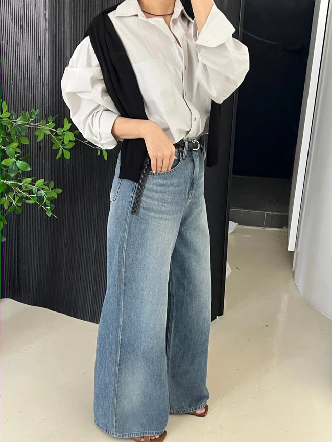 모브 하이웨스트 워싱 와이드 데님팬츠 | Rangbe
