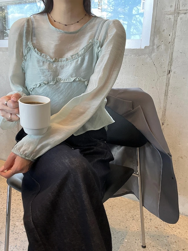 뷔스티에 세트 시스루 여리핏 블라우스 | Rangbe