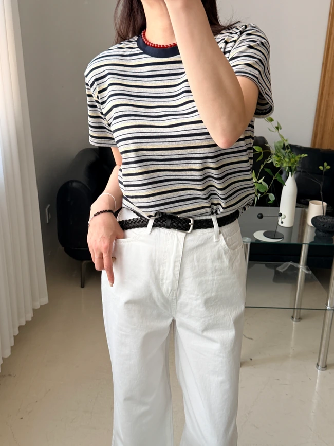 빈 컬러 포이트 탄탄 티셔츠 | Rangbe