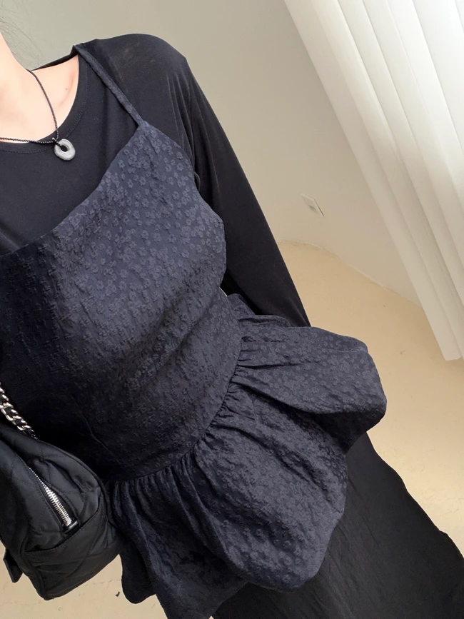 자카드 플라워 엠보 뷔스티에 나시 블라우스 | Rangbe