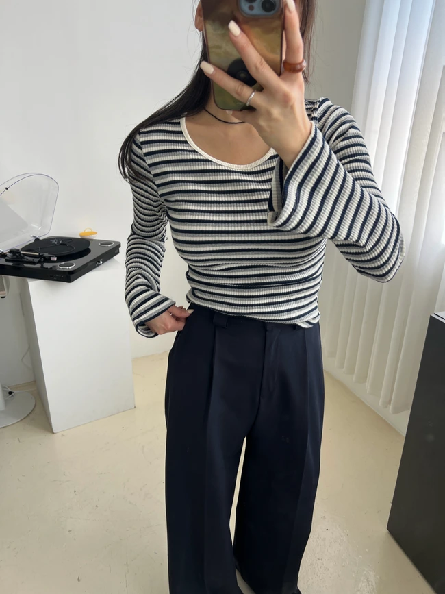 쫀쫀 소매 와이드 단가라 티셔츠 | Rangbe