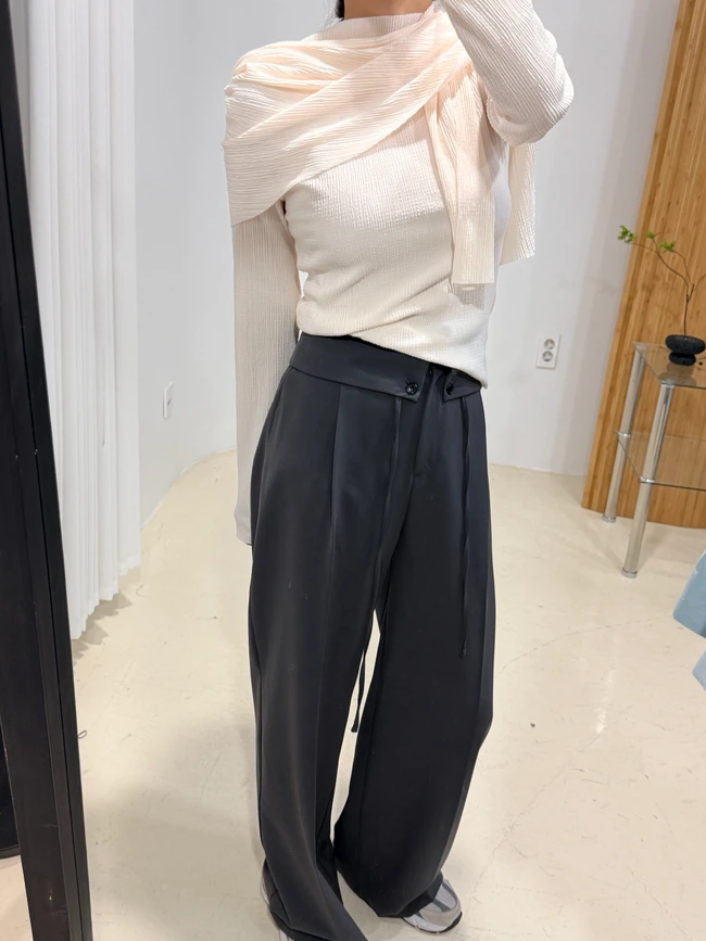 폴딩 끈 원핀턱 세미와이드 슬랙스 | Rangbe